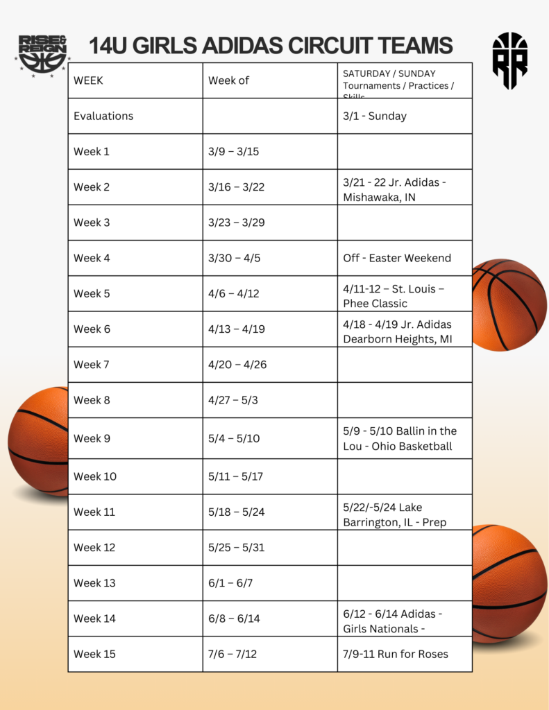 5TH - 8TH GRADE SCHEDULE / 14U SCHEDULE / 15U - 17U SCHEDULE